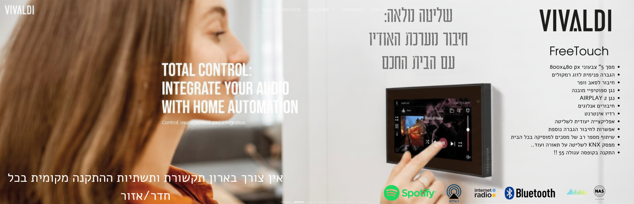 מפסק מסך הכולל אפליקצייה מובנת , שעונים , חיבור מצלמות ואינטרקום
